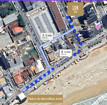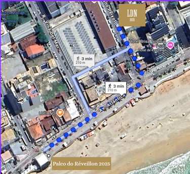 Localizado a apenas 3 minutos do palco principal dos Cavaleiros, oferecemos o melhor dos dois mundos: aproveite a energia do Réveillon e a atmosfera da festa, mas sem o caos típico. Com mesas reservadas, você tem a liberdade de sair, explorar e retornar ao seu espaço exclusivo a qualquer momento.